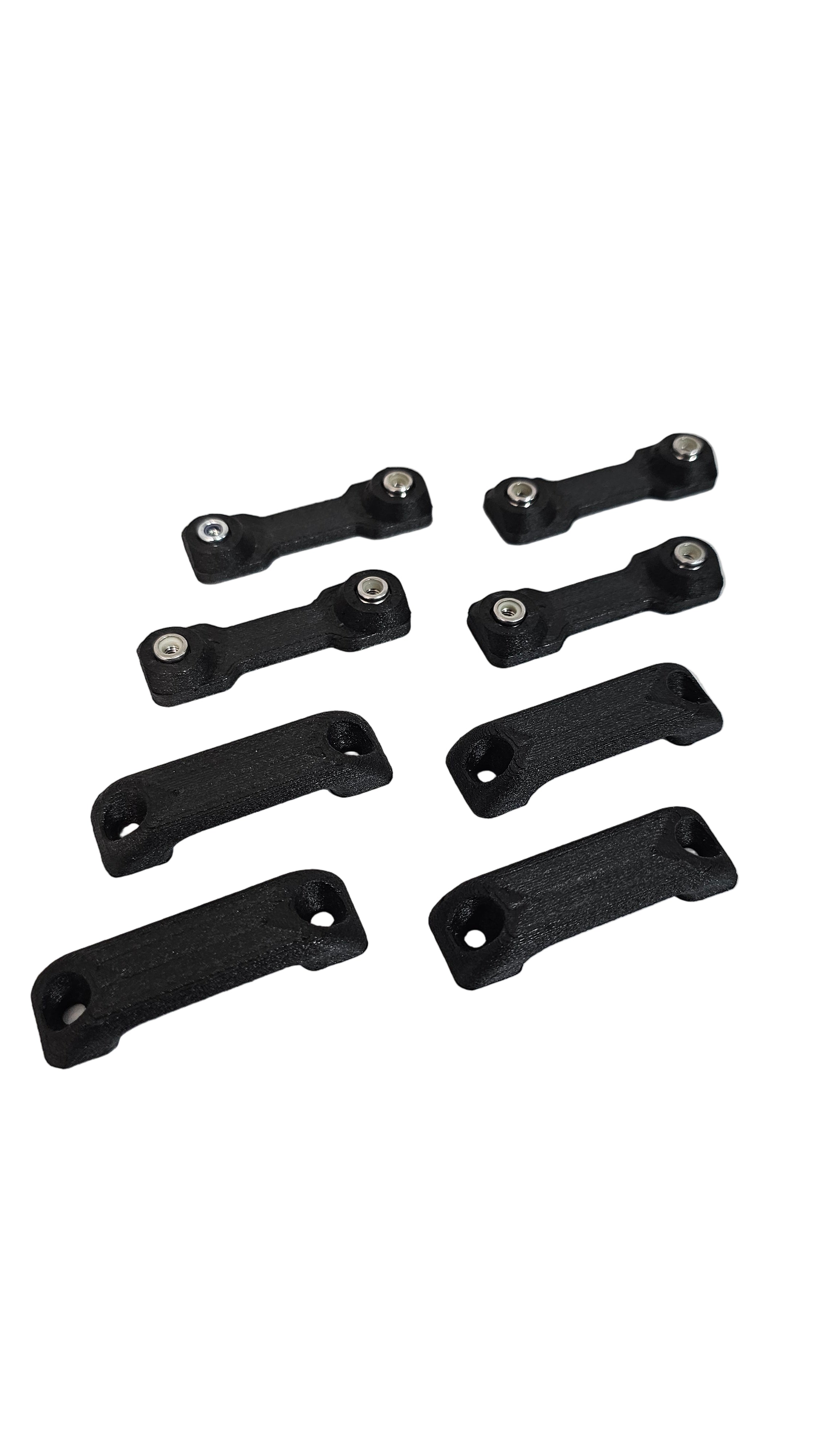 You can buy a set of 2 pcs at a weight of 0.8 oz or 4 pcs at 1.6 oz. The inside dimensions should fit most rubber straps up to 0.18" thick and 0.813" wide. The baggage loops